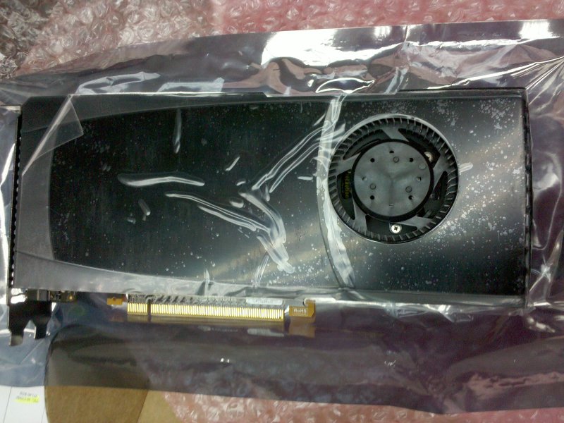 In rete sono apparse le prime immagini di una GTX470 che potete osservare sotto, si può evincere il doppio connettore a 6pin per l'alimentazione supplementare della scheda, due connettori per lo SLi, due porte di tipo DVI ed una HDMI, inoltre è possibile leggere l'etichetta sulla scheda che riporta la presenza di GF100-375-A3, ovvero la terza revisione del chip GF100.