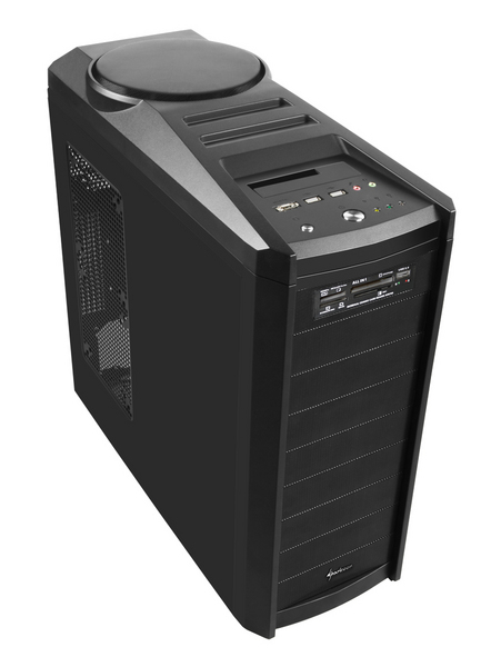 Così Sharkoon ha integrato per la prima volta uno dei suoi prodotti maggiormente richiesti, la docking station esterna QuickPort, direttamente in un case per PC. Gli hard disk possono essere facilmente inseriti nella docking station senza smontare nulla. Un altro tratto distintivo sulla parte superiore del case è la ventola da 180 millimetri a LED blu, che soffia aria calda fuori dal case. Inoltre, sempre nella parte alta, trovano alloggio i pulsanti di accensione e reset, le connessioni audio, i led che indicano lo stato di power on e il funzionamento dei dischi rigidi, una porta eSATA e due porte USB. Un lettore di schede di memoria è installato sul pannello anteriore e supporta SD, SDHC , MS ,CF e contiene una porta USB aggiuntiva.