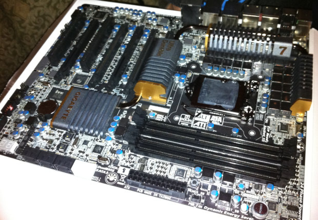 La GA-P67-UD7 utilizza un VRM a 24 fasi per alimentare il processore su socket LGA1155. Tra gli slot di espansione, quattro PCI- E 2.0 x16, sembra che ci sia un bridge PCI-E (probabilmente nForce 200), che gli permette di avere 2 slot in modalità x16, oppure 4 slot in x8. Ci sono due slot PCI e uno PCI-E x1. La connettività include sei SATA 3 Gb/s, due porte SATA 6 Gb/s interne, due porte gigabit Ethernet, 8 canali audio HD , quattro porte USB 3.0, FireWire, ed eSATA .