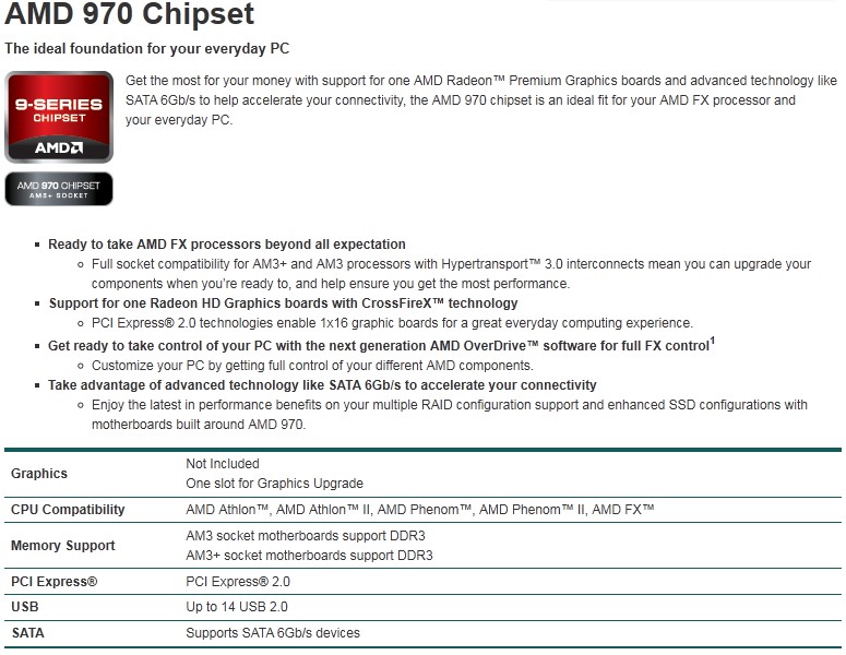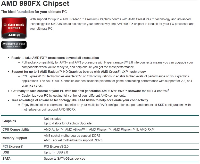 AMD annuncia i chipset della serie 900 con supporto ufficiale alle CPU Bulldozer FX e destinati alle schede madri con socket AM3+.Le principali differenze tra i tre chipset riguarda il numero di link PCI Express per l'installazione di schede video nel sistema. Il 990FX equipaggerà le schede top di gamma AM3+ e permetterà di gestire fino a 4 schede video (SLI o Crossfire) con link Pci Express 2.0 @ x8 o due schede video @ x16. Il 990X potrà gestire 2 schede @ x8 o una @ x16 e il 970 permetterà soltanto configurazioni a singola scheda video @ x16.