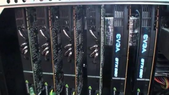 Silverstone al Computex 2011 presenta il primo case o per meglio dire un concept case in grado di ospitare ben 6 schede dual slot indifferentemente se Nvidia o Amd, di chi stiamo parlando; del Silverstone Temjin TJ12.Silverstone come accennato ad inizio news ha presentato al Computex 2011 di Taipei un nuovo concept case denominato Temjin TJ12 in grado di ospitare 6 schede, si avete capito bene, dual slot che potranno essere sia delle GeForce sia delle Radeon. Nella configurazione presentata al Computex di Taipei erano presenti quattro GTX480 e due GTX580. Possiamo ammirare il tutto in questa foto: