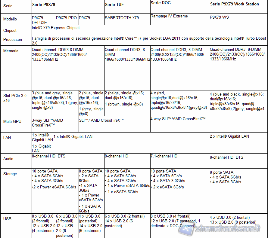 La nuova famiglia include le schede della serie P9X79 con l’esclusiva tecnologia Dual Intelligent Processor 3 e la nuova generazione della tecnologia DIP, ovvero DIGI+ VRM (digital power design), la scheda TUF SABERTOOTH X79 e la scheda madre ROG Rampage IV Extreme, progettata per l’overclock estremo.