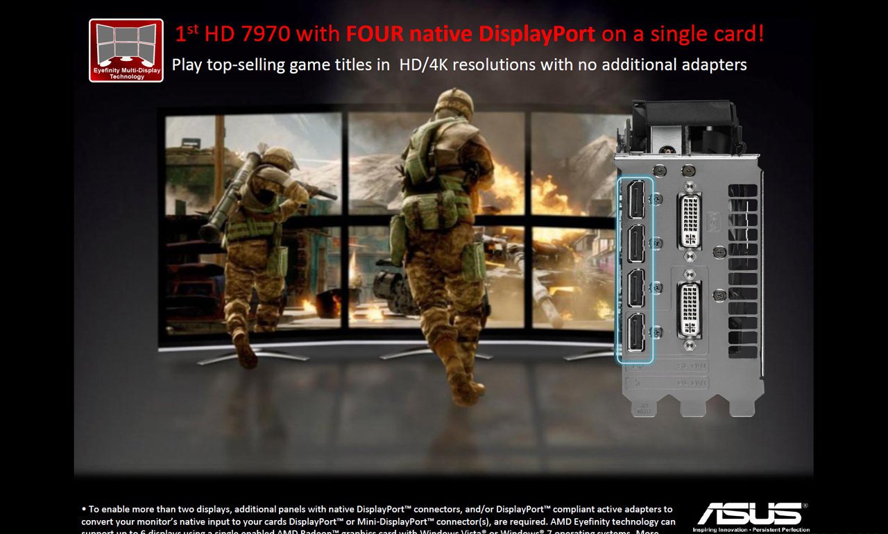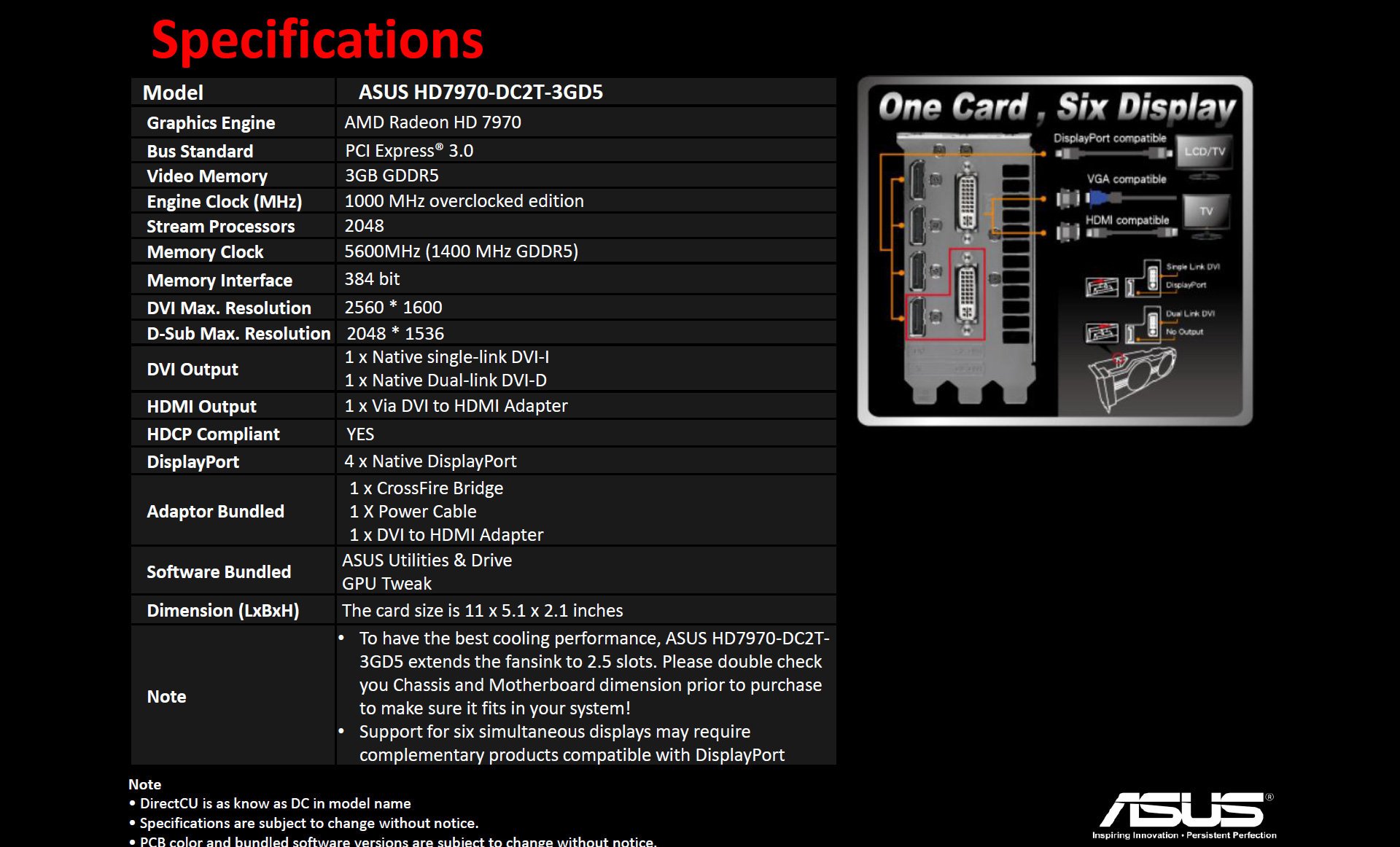 Le frequenze operative sono leggermente superiori al modello reference: 1000 MHz La ASUS HD 7970 DirectCU II è dotata di una features chiamata VGA Hotwire. Tramite un connettore a 2-pin, dove un'estremità viene saldata alla scheda video e l'altra a determinati connettori presenti nelle schede madri della famiglia ASUS ROG Rampage IV, si avrà completo accesso, per via software, al controller delle tensioni della mainboard per agire sulla scheda video senza l'utilizzo di resistenze variabili.er la GPU e 5.60 GHz / 1400 MHz per la memoria DDR5, contro i 925 MHz e 5.50 GHz / 1375 MHz definiti da AMD.