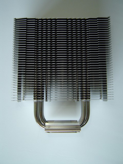 La struttura a torre del Noctua NH-U12P rispecchia quella dei migliori dissipatori in circolazione. Da una base in rame si dipartono le 4 heatpipes ad “U” ( da cui il nome di questa serie di dissipatori) che conducono il calore un voluminoso corpo in alluminio composto da 36 alette. La base e le heatpipes sono in rame ma sono state nickelate (come pure le alette) per conferire un aspetto più lucido e omogeneo. In alto risalta lo stemma della Noctua a rilievo sull'ultima aletta di alluminio.