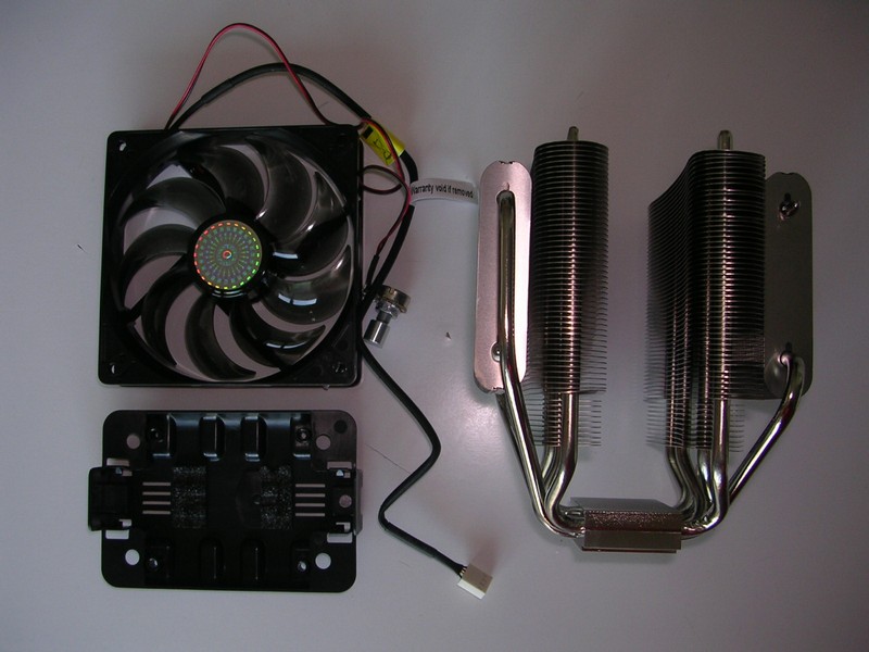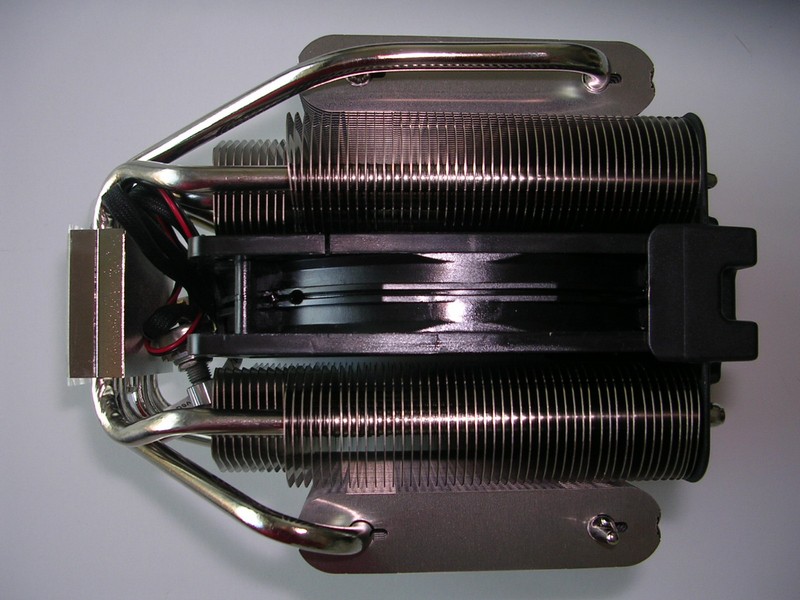 Il corpo del dissipatore è composto da 4 blocchi di alette in alluminio. I blocchi centrali, più vicini alla ventola, presentano alette disposte orizzontalmente e raccolgono il calore delle due heatpipes centrali (che presumibilmente saranno anche le più “calde”) e delle due più esterne tutte piegate a “U”. Ai blocchi esterni, che dispongono invece di alette disposte perpendicolarmente alle altre, arrivano le altre 4 heatpipes. Grazie a questa struttura particolarmente elaborata e alla ventola in posizione centrale il flusso d'aria e il calore viene ben distribuito su tutta la struttura, riuscendo a ottenere prestazioni ottime anche con un flusso d'aria piuttosto contenuto.