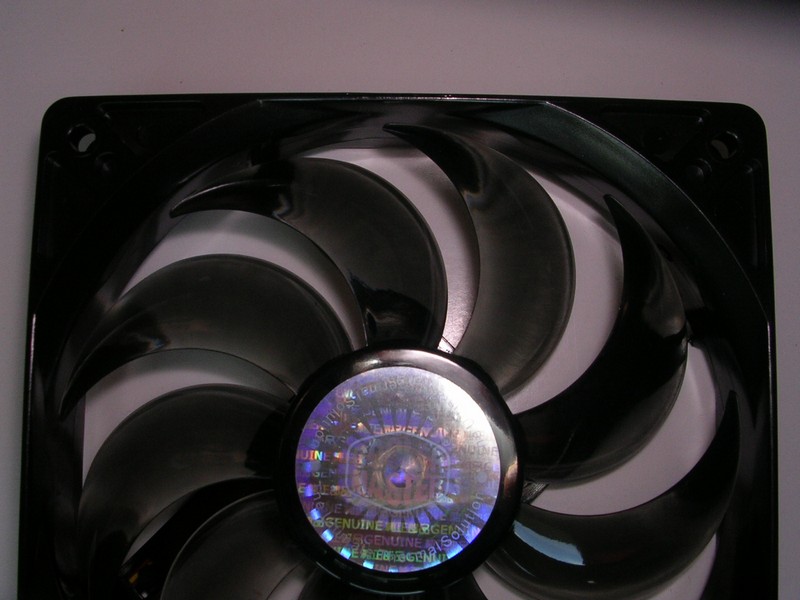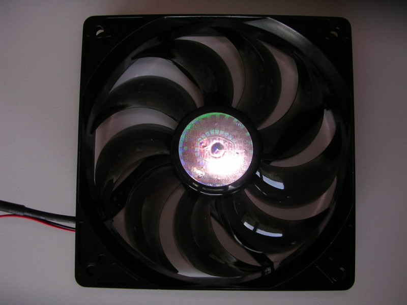 Merita una breve nota la tecnologia utilizzata per il rotore della ventola: in luogo dei comuni sleeve bearing e 2-ball bearing, troviamo il rifle bearing che promette rumorosità contenute come lo sleeve bearing ma tempi di vita medi comparabili a quelli del 2-ball bearing (solitamente ben più lunghi di quelli dello sleeve bearing). La tecnologia rifle bearing è utilizzata praticamente soltanto dalla CoolerMaster, benché dalla struttura stessa del rotore si possa capire facilmente i vantaggi che si hanno quando la ventola lavora in posizione verticale. Ricordiamo in breve il funzionamento dello sleeve bearing: è basato su un rotore solidale alle pale che girano (essenzialmente un perno) il quale ruota all'interno dello statore, costituito da un cilindro cavo riempito di lubrificante. Lo spazio in cui deve ruotare il perno è abbastanza più ampio dello stretto necessario e quindi il compito del lubrificante di far galleggiare il corpo rotante è essenziale, specialmente quando la ventola è in posizione verticale in cui il peso tende a schiacciare il lubrificante, ottenendo una rotazione non perfettamente circolare ma ellittica e producendo forti attriti. Ciò causa nello sleave bearing maggiore rumorosità finché il consumo del lubrificante a causa del peso stesso del corpo rotante porta alla morte definitiva della ventola. Il concetto del rifle bearing è essenzialmente identico allo sleeve bearing ma in questo caso lo statore presenta una struttura diversa, che permette al rotore di autosostenersi senza gravare troppo sul lubrificante. Come si può notare nell'immagine il corpo che sorregge il rotore non è continuo ma presenta dei tagli ricurvi, che permettono al lubrificante di fluire attraverso di essi. In questo modo il regime di rotazione della ventola permette di spingere il lubrificante attraverso queste fessure e a farlo rientrare da sotto sostenendo il corpo rotante e limitando al massimo gli attriti.