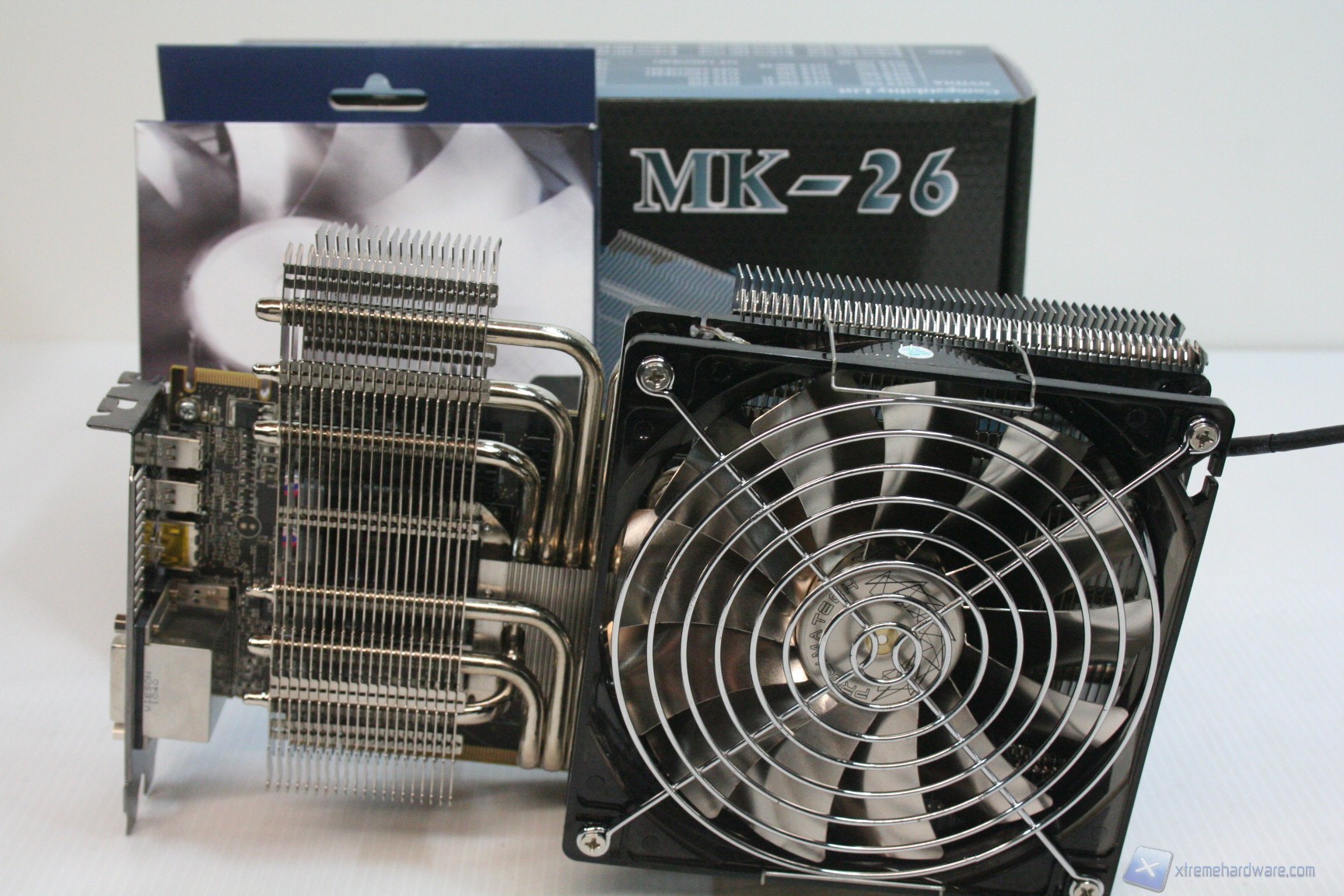 L’MK-26 è stato testato con una ventola Prolimatech Aluminum da 140mm e con 2 BlueVortex da 120mm; sarà montato su di una AMD HD6870, che è stata utilizzata come parametro di test per diversi dissipatori recensiti fin d’ora, e quindi verranno confrontate le performance con altri modelli ad aria di diverse fasce di prezzo.