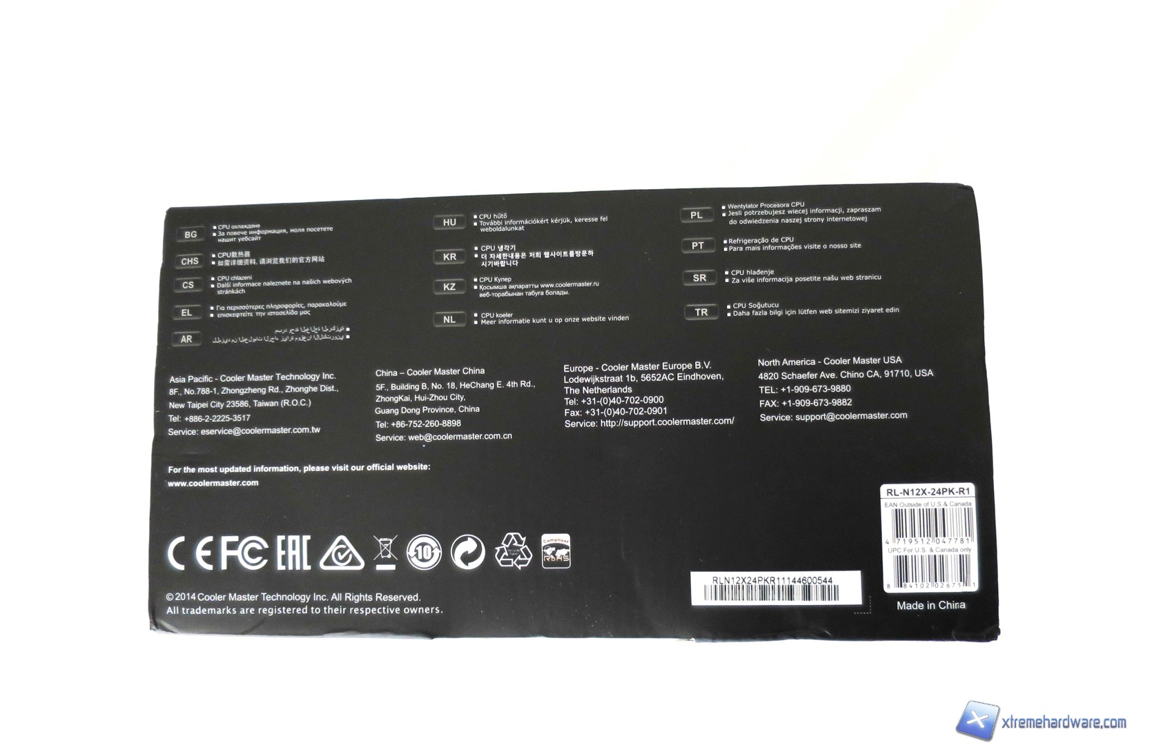 Nel retro della confezione invece troviamo le caratteristiche riportate in diverse lingue, tra cui l’italiano, una tabella di confronto con altri dissipatori della stessa Cooler Master e le dimensioni dei componenti espresse in millimetri.