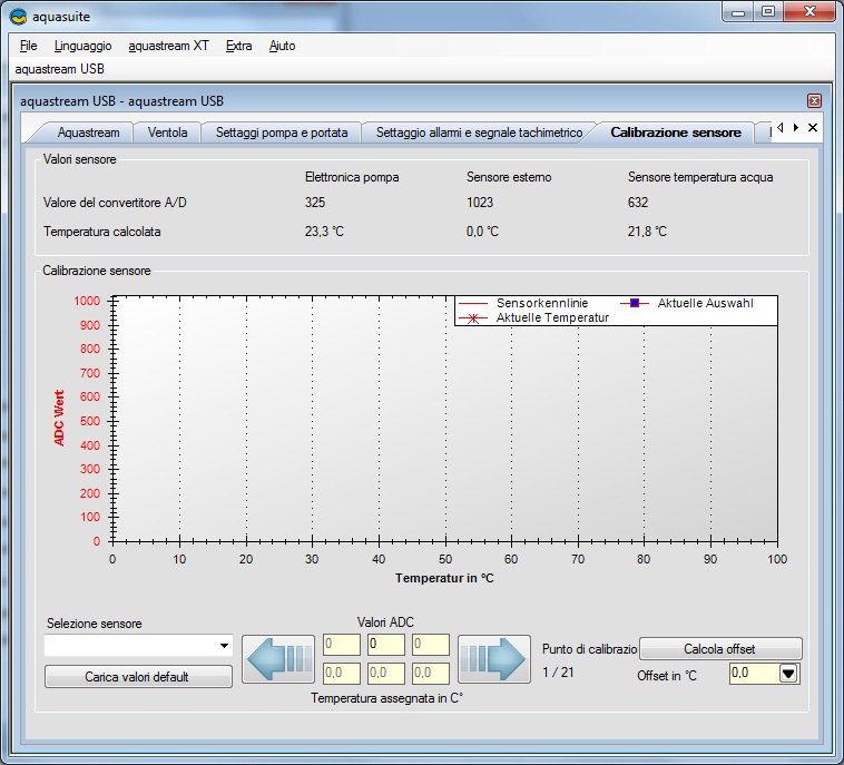 A seguire la scheda che ci permette di calibrare il sensore ed allinearlo con altri eventuali sensori di nostro possesso.