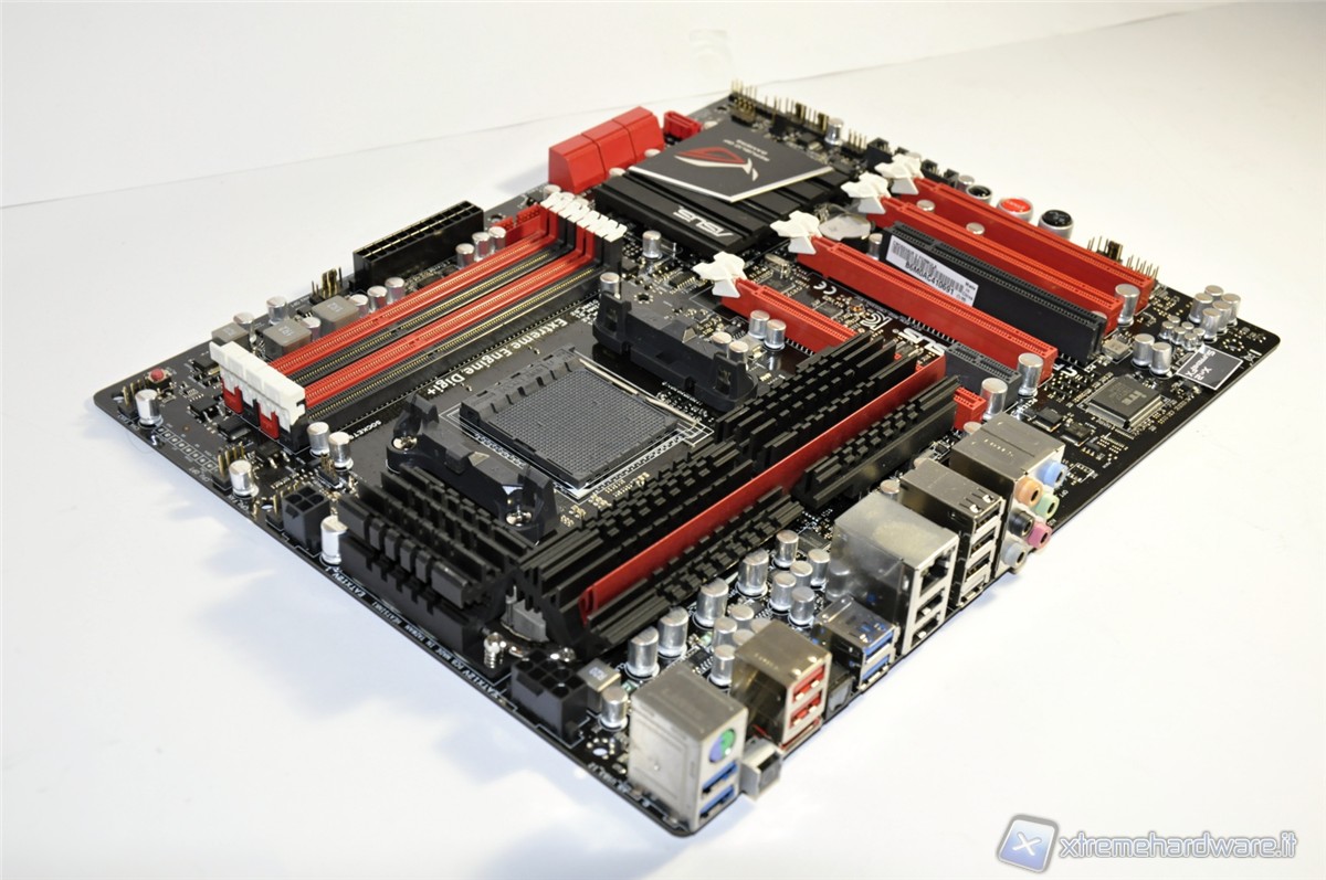 Highlighted, covered by the adhesive, the ASUS Crosshair Formula V has a dedicated audio chip from Creative, the X-Fi 2 SupremeFX signal processing for high-definition audio.