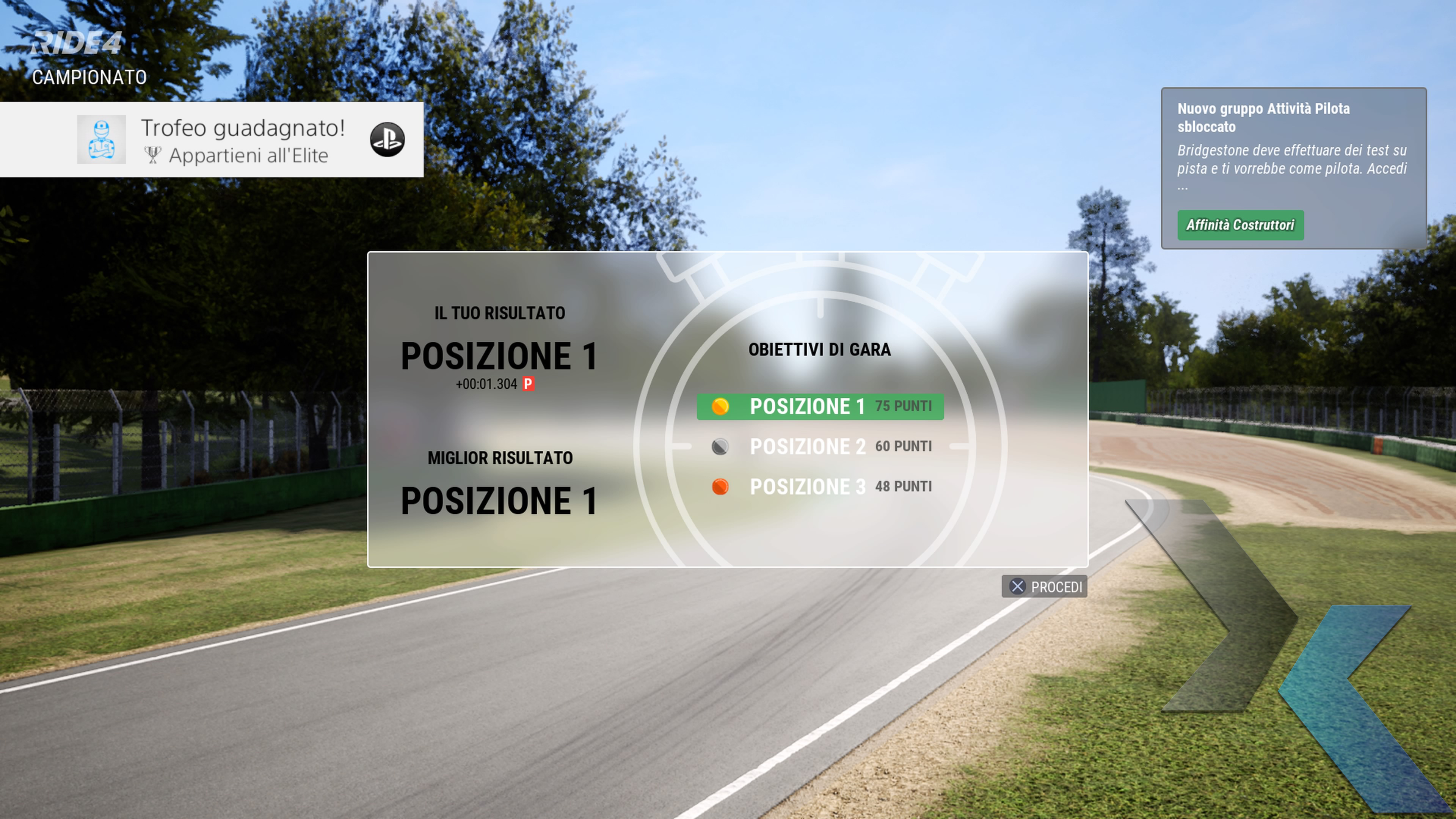 Com’è consuetudine in questo genere di giochi, il primo scoglio da superare è sempre la patente, che ci darà immediatamente una idea precisa del carattere competitivo del gioco. Oltre al classico lap time sul giro intero o su settori di circuito, Ride 4 pone attenzione anche alle traiettorie, e lo fa proponendoci degli esami patente in cui dovremo passare in piega in traiettoria tra due paletti.. non molto più larghi di una moto sdraiata in piega! La tolleranza all’errore è molto piccola (nella versione di first release prima della patch da 2 giga era ancora minore se non pari a zero), basta mettere una ruota fuori dalla pista (intendendo anche la linea bianca) per vedere il test fallito.