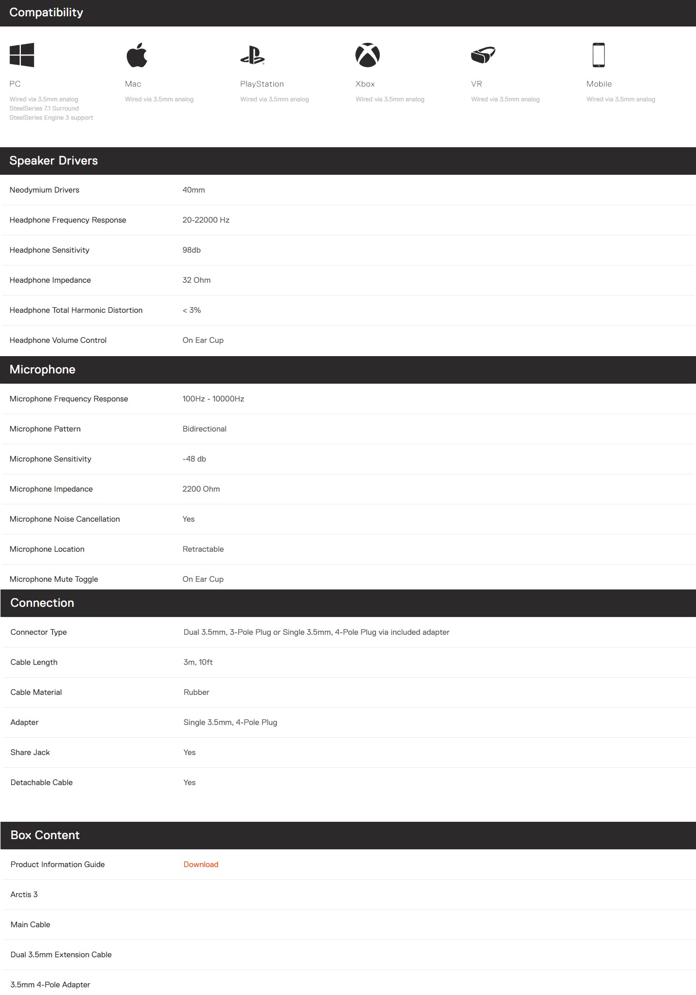 SteelSeries Arctis 3 - Specifiche Tecniche