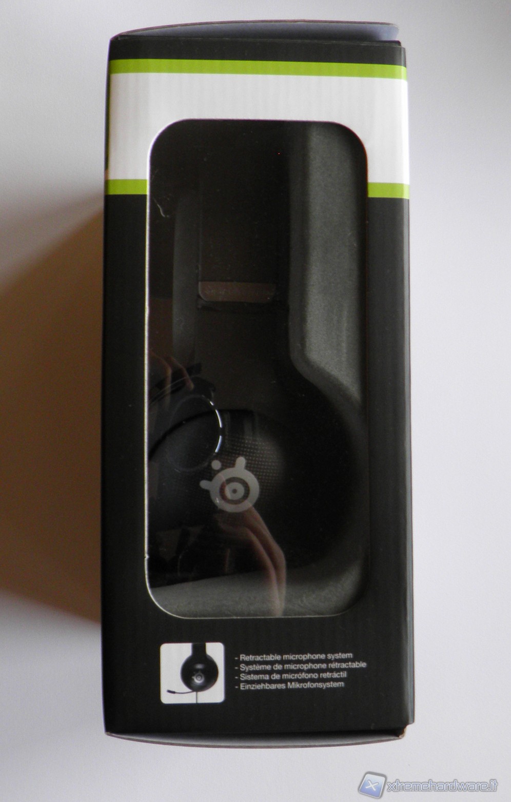 Sul retro sono presenti informazioni riguardanti le cuffie 2.1 wireless, le specifiche tecniche e le features uniche che SteelSeries ha utilizzato per caratterizzare il proprio prodotto.