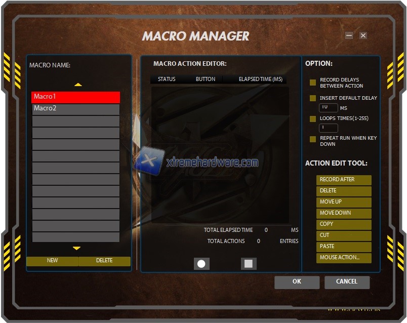 Tra le assegnazioni troveremo anche un editor di Macro con cui poter creare la nostra. La schermata/Menù che si aprirà è classica e ci darà modo di agire sul tempo e ripetizione della stessa.