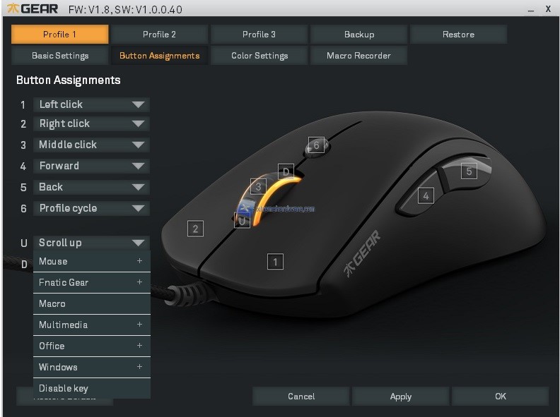 Con il Fnatic Gear FLICK non viene fornito alcun software di gestione che ci permetterà di agire sull’assegnazione di tasti o funzioni, dovremo provvedere a collegarci al sito di Fnatic Gear e scaricarlo. Una volta scaricato a differenza della tastiera RUSH dove dovevamo installare anche i driver dedicati, ci basterà installare solo l’eseguibile/pacchetto di installazione per poter subito agire sul mouse.