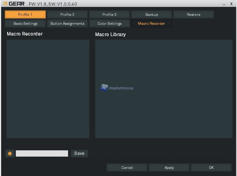 Infine abbiamo il Menù ‘’Macro Recorder’’ ovvero un Macro Manager dal quale potremo creare e eventualmente assegnare Macro a determinati tasti. Editor molto semplice e forse basilare come visto anche con il software della tastiera.