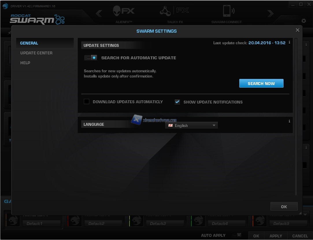 A quanto pare anche ROCCAT ha deciso di portarsi al passo con i tempi anche per quanto riguarda il software di gestione dei propri prodotti. Se prima trovavamo un singolo software di gestione per ogni periferiche, con le ultime novità, ROCCAT ha introdotto il software unificato che va sotto il nome di ROCCAT Swarm. Un software unico che ci permetterà di personalizzazre e gestire nel migliore dei modi le nostre ed ultime periferiche. Al momento attuale il software ROCCAT Swarm è compatibile con l’ultimissima tastiera meccanica con retroilluminazione RGB ROCCAT Ryos MK FX e i mouse modelli NYTH, KOVA 2016 e KIRO. Siamo sicuri che ROCCAT pian piano amplierà ed estenderà il supporto ai maggiori ed ultimi prodotti nonché i futuri.
