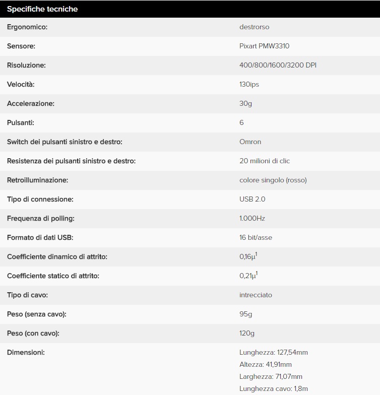 Procediamo ad elencare brevemente le caratteristiche del mouse HyperX Pulsefire FPS: