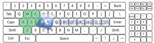 Come notiamo, dalle immagini che riportiamo, la tastiera ha un buon antighosting nonostante si tratti di una tastiera a membrana. Ci è risultato addirittura molto difficile spingere tutti i tasti contemporaneamente per mostrare i limiti in ambito antighosting. La casa tedesca dichiara un 6-key rollover e come possiamo notare arriviamo a spingere fino a 9 tasti in linea e 6 non allineati tra di loro, tutto sommato un buon risultato.