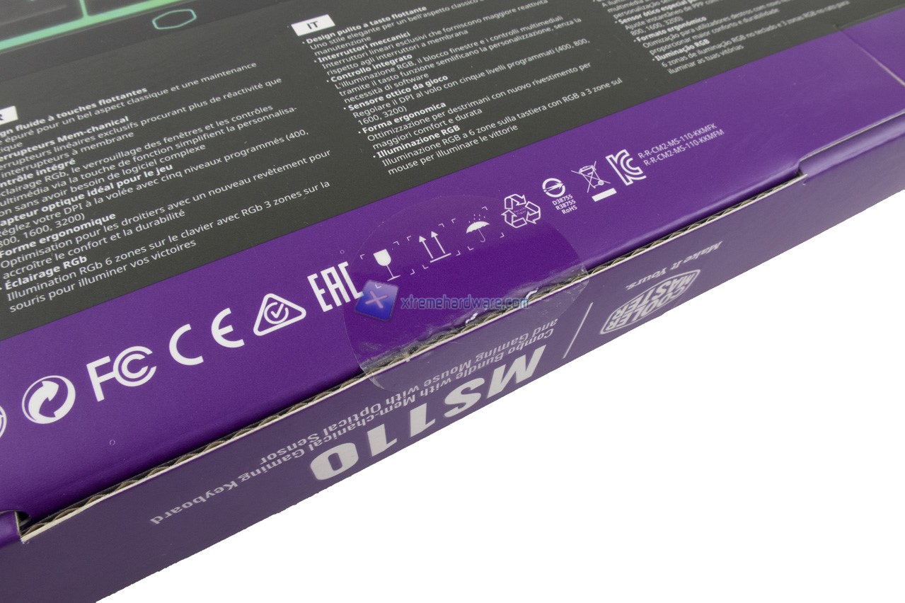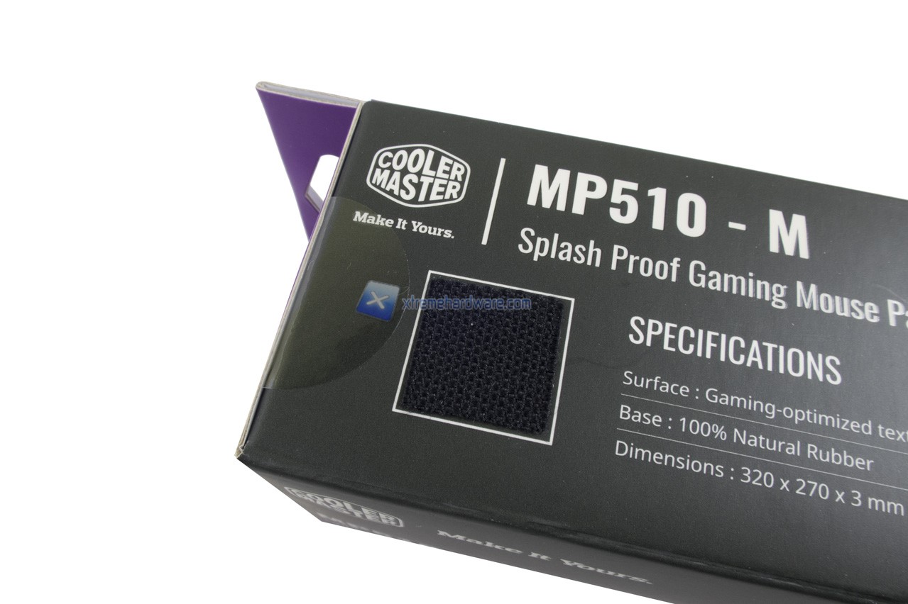 Per il Combo Kit troviamo la classica apertura in corrispondenza delle freccette direzionali per poter, in caso di shop fisico, sentire il feedback che restituisce la tastiera mem-canica. Per il mousepad invece troviamo un ritaglio di superficie per, anche in questo caso, toccare con mano la qualità e tipologia di superficie del mousepad in tessuto.