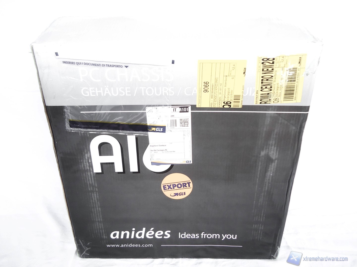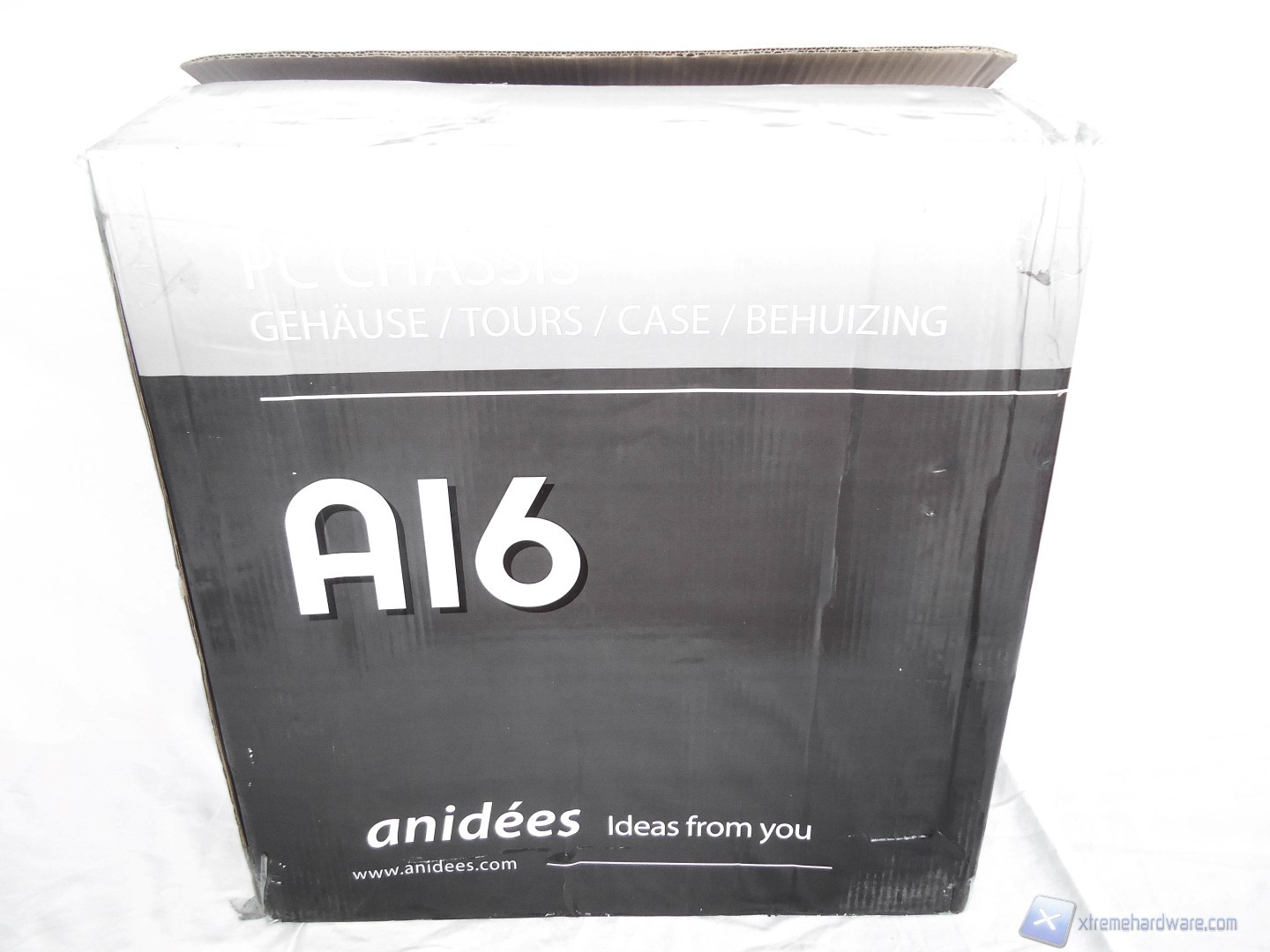 La confezione dell’Anidees AI6 è realizzata in cartone colorato ma non presenta nessuna immagine del prodotto su di essa. La parte frontale e laterale presentano solamente il nome del modello e il motto dell’azienda. I lati riportano invece le specifiche tecniche ed inoltre viene specificato il modello del case contenuto nella confezione.