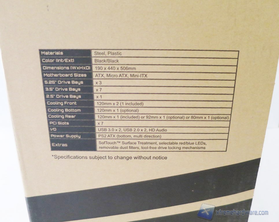 Ai lati così come nella parte superiore della confezione troviamo modello e brand con relativa tabella che ci specifica part number ed un ulteriore tabella con le specifiche tecniche.