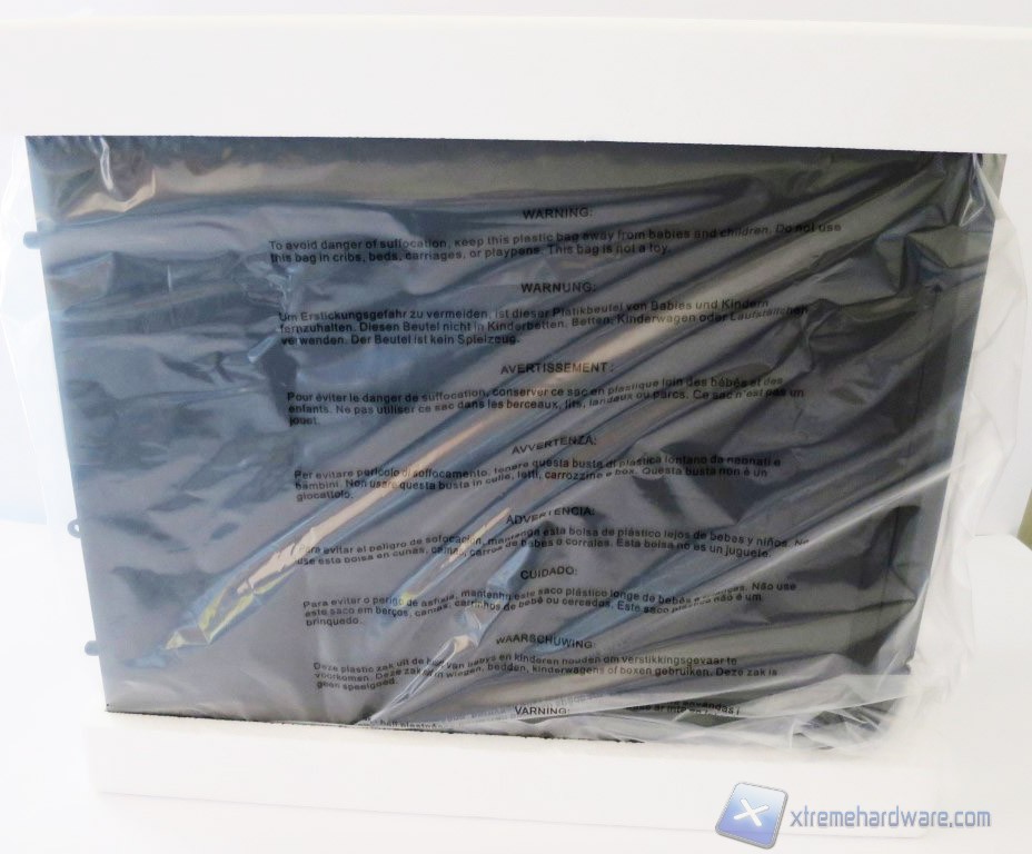 Il case è ospitato in una busta in plastica trasparente e sorretto da due sagome in polietilene che prevengono eventuali urti o danni durante il trasporto.