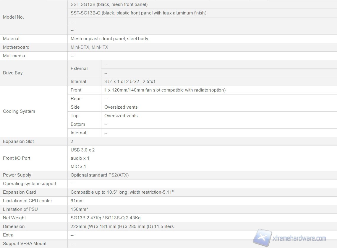 SilverStone SG13: che SUGO! - SG13: specifiche tecniche