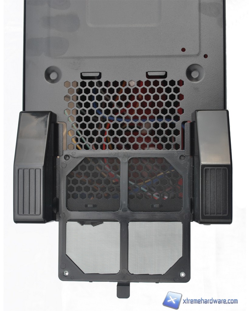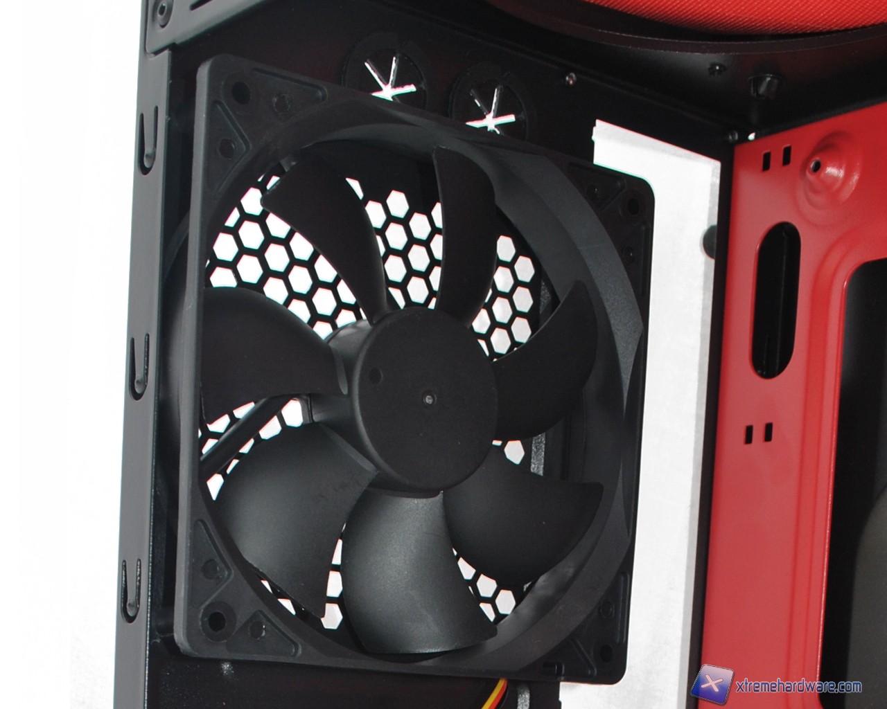 Le due ventole frontali da 120mm garantiscono un buon apporto di aria fresca dall'esterno, diretta in particolare verso gli HDD e sli SSD. Siccome la gabbia degli hard disk non è rimovibile il flusso d'aria è comunque ostacolato nel suo percorso iniziale, di conseguenza la ventilazione in zona scheda madre e scheda video risulta buona ma non così efficace come sarebbe potuto essere. Le ventole sul top (che ricordiamo essere opzionali) e quella sul retro garantiscono una capacità più che adeguata di espulsione dell'aria calda proveniente dai componenti. Insomma nel complesso anche in questo caso abbiamo un prodotto senza infamia e senza lode in grado di adattarsi a quasi tutte le configurazioni hardware eccetto le più spinte come sistemi multi-GPU di alto livello.