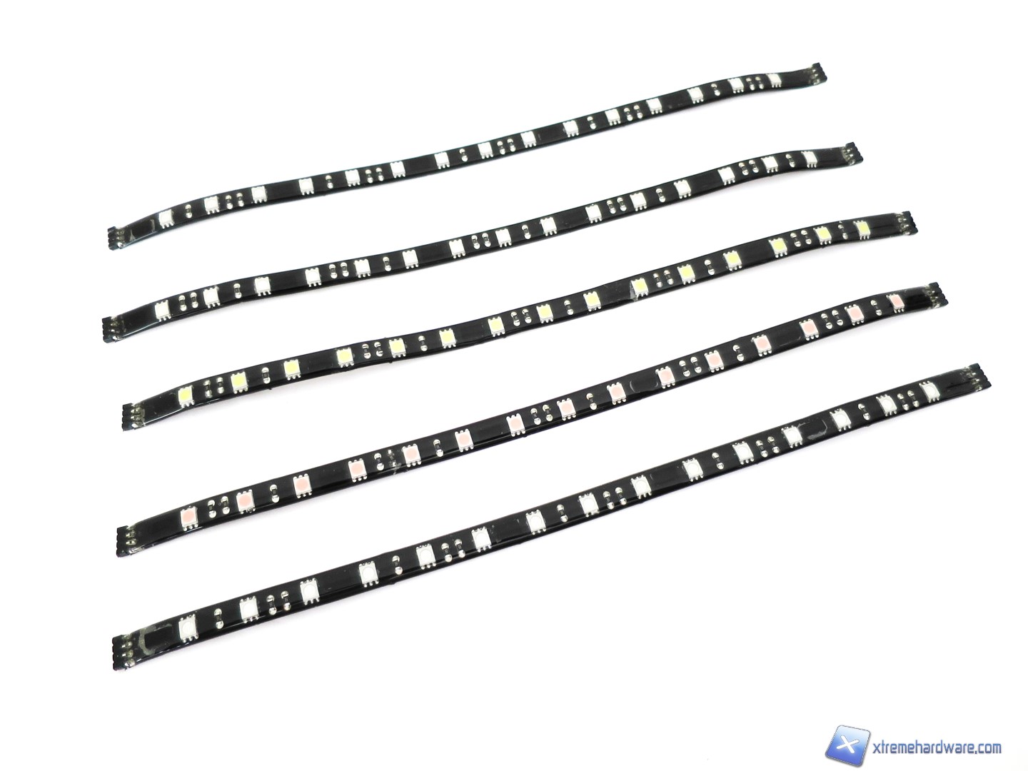 Eccoci dunque ad analizzare le nuove BitFenix Alchemy 2.0 Magnetic. Come suggerisce il nome e come abbiamo accennato brevemente in precedenza, il nuovo modello per rendere l’installazione più veloce ed agevole è dotata di piccoli magneti posti lungo tutta la superficie della strip. Nel, dettaglio questo piccoli magneti in neodimio (gli stessi dei driver delle cuffie) sono posti all’interno della strip e ricoperti insieme ai LED SMD da uno strato di poliuretano che assicura un alto grado di protezione oltre che di flessibilità, garantendo anche angoli a 90 gradi. Potremo dunque facilmente installare le strip nel nostro case ed in caso di pulizia dello stesso rimuoverle per poi reinstallarle senza problemi.  Il modello ricevuto, caratterizzato da una lunghezza di 30cm, è il modello intermedio e permette di coprire una buona superficie all’interno del nostro case. Ovviamente non solo la lunghezza delle strip giocherà un ruolo fondamentale, ma anche il modello di LED SMD impiegato, i TriBright 5050,  assicura un’illuminazione consistente ed  omogenea.  Ciascun SMD 5050 è costituito internamente da 3 LED (RGB) e programmato per emettere il colore desiderato.
