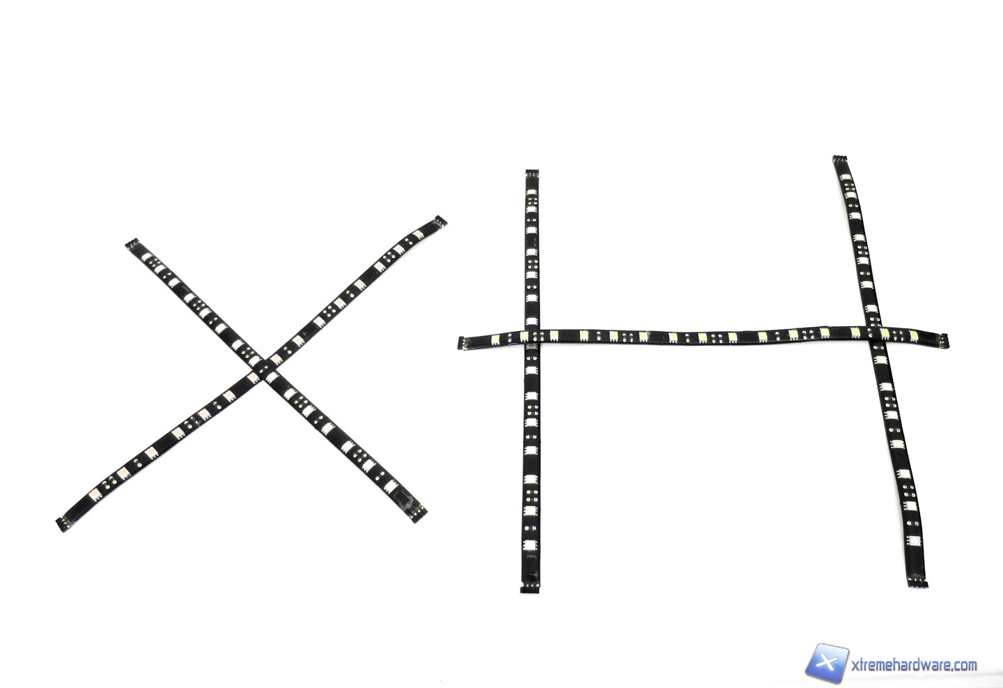 Con le BitFenix Alchemy 2.0 Magnetic potremo sbizzarrirci e creare anche diverse composizioni non solo esteticamente ma anche fisicamente nel nostro case. A seguire abbiamo giocato con le strip creando le nostre iniziali ed una sorta di fascio di raggi.