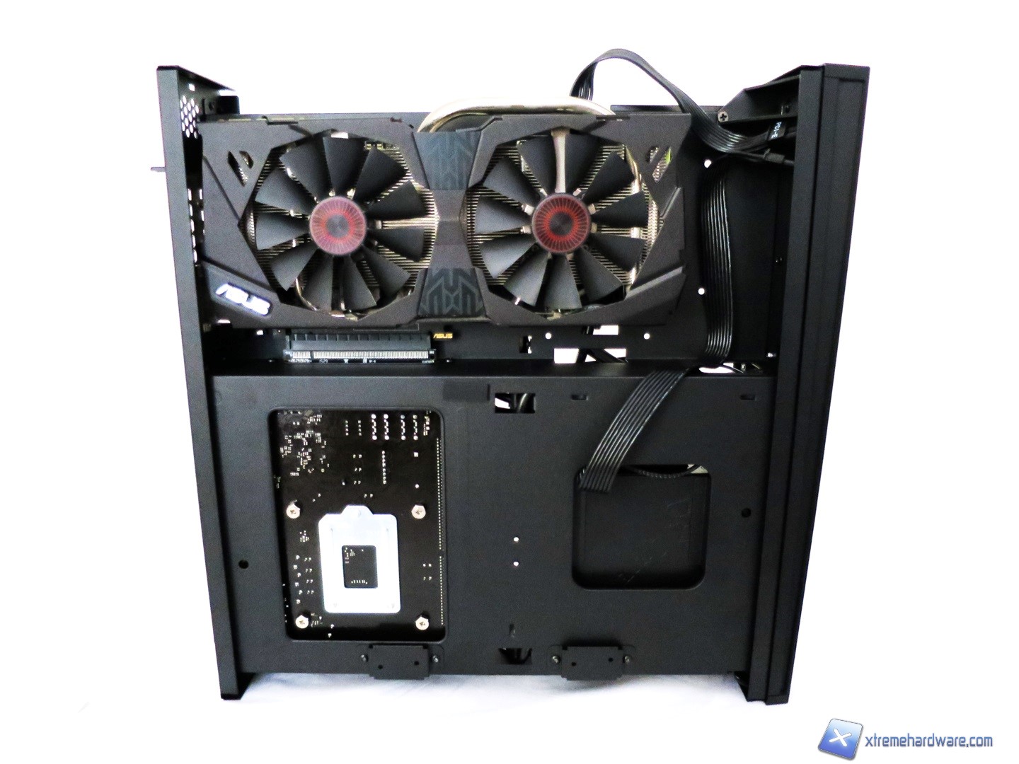 Siamo passati dunque alla fase di montaggio che ha visto l’integrazione di un sistema ITX Intel in abbinamento ad un alimentatore SilverStone SFX SX-500LG che ha permesso con estrema facilità di installare tutti i componenti grazie anche alla modularità dello stesso. I componenti sono stati installati tutti velocemente e la scheda video, una ASUS GTX970 Strix, è stata installata nella zona posteriore dove, grazie alla Riser card, ha trovato la perfetta collocazione lontana da ulteriori fonti di calore. Per la configurazione abbiamo inoltre utilizzato un dissipatore SilverStone Argon AR06 rientrante nei limiti di altezza imposti dal Raven RVZ02. Attenzione al cablaggio da eseguire con attenzione e pazienza.