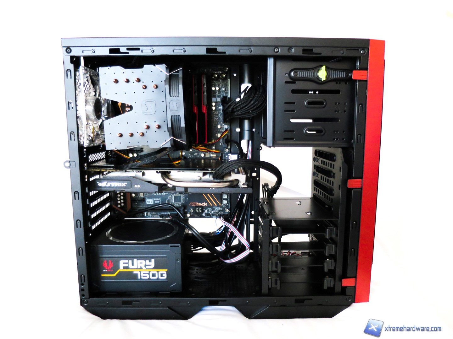 Come di consueto arriviamo alla fase di installazione dei componenti nel modello 503 di In Win. Lo spazio è sufficiente ad installare la nostra configurazione ed i fori per il cablaggio sono sufficienti. Passati all’installazione dei componenti abbiamo inserito con facilità ogni componente e effettuato un buon cablaggio grazie ai fori presenti. Unico appunto che ci sentiamo di fare e di stare attenti al cavo da 8 Pin EPS da far passare prima di installare la scheda madre visto che il cavo dovrà passare sotto la scheda madre e quindi attraverso il tray ed il foro per la gestione del dissipatore. Nel complesso non abbiamo avuto difficoltà ad installare la configurazione ma come sempre bisogna essere pazienti per organizzare al meglio il cablaggio. Lo spazio per il dissipatore è stato sufficiente nel nostro caso, mentre nessun problema per installare la nostra scheda video nel primo slot della scheda madre.