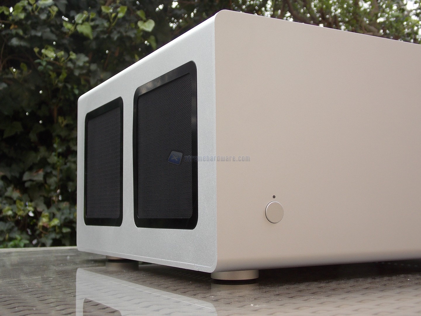 La versione che abbiamo ricevuto presenta la colorazione Argento, rispetto alla variante Black in commercio. Come possiamo osservare, sia dalle immagini che dalla velocissima presentazione video, il telaio esterno presenta una qualità molto elevata, dato lo spessore di alluminio pari a 4mm e la finitura "sandblasted". La linearità del design, senza il minimo segno di elementi decorativi peculiari, certamente aumenta il grado di mimetizzazione qualora fosse utilizzato nel proprio salone, con un utilizzo quindi da mediacenter di alto livello. Osserviamo i dettagli strutturali.