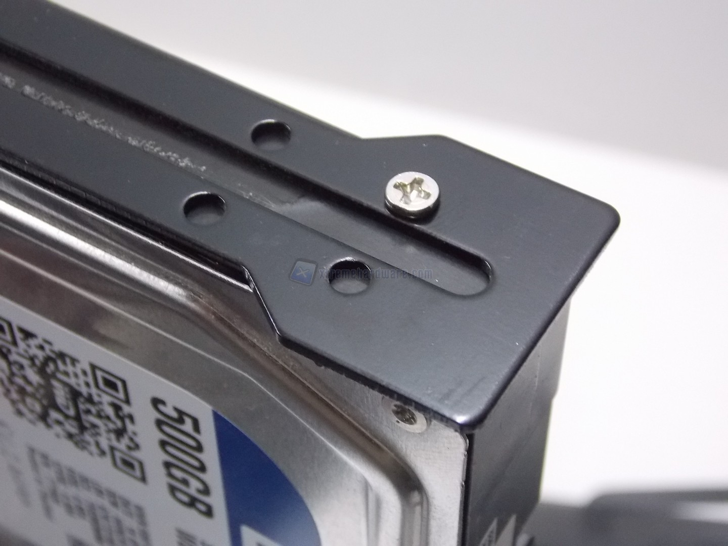 La gestione dei dischi rigidi è certamente sui generis per via della presenza del sistema di ancoraggio unico, e certamente poliedrico. Diamo uno sguardo alla modalità di inserzione e fissaggio dei dischi da 3.5":