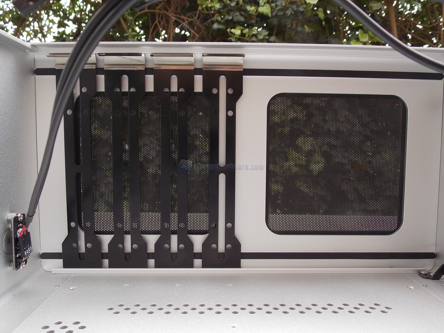 Posteriormente notiamo la classica predisposizione per le periferiche di espansione PCI, ed il posizionamento della scheda madre e dell'alimentatore: