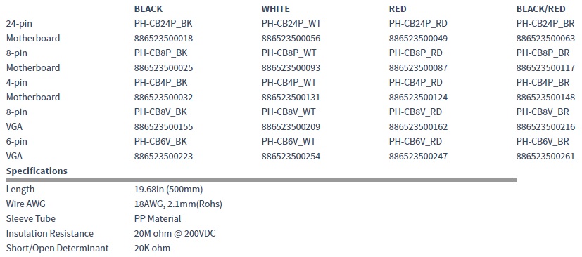 Passando ai cavi, Phanteks ha completato la commercializzazione del Power Splitter con un set di prolunghe disponibili in diversi colori. Disponibili in 6 colori tra cui Nero, Bianco, Rosso, Blu, Arancione, Verde o combo Nero/Rosso, Nero/Bianco. Vedrete a seguire come noi abbiamo richiesto il set Nero/Rosso.