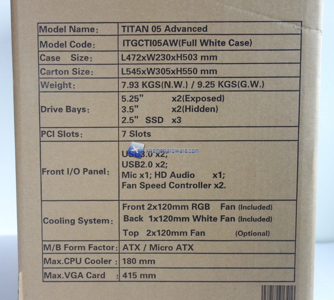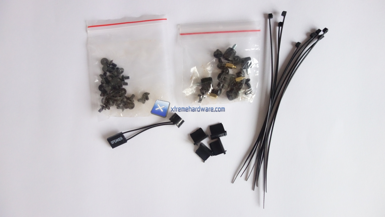 La confezione ed il bundle del case sono minimali in modo da contenere il prezzo il più possibile. C'è davvero soltanto il minimo indispensabile, il bundle comprende le viti necessarie al montaggio dei componenti ed alcune fascette di plastica. Potremmo anche considerare come parte del bundle le 3 ventole preinstallate nel case di cui 2 a LED RGB tuttavia sono proprio queste ventole la caratteristica distintiva del Titan 05 Advanced perciò le riteniamo come parte integrante del cabinet e non del bundle.