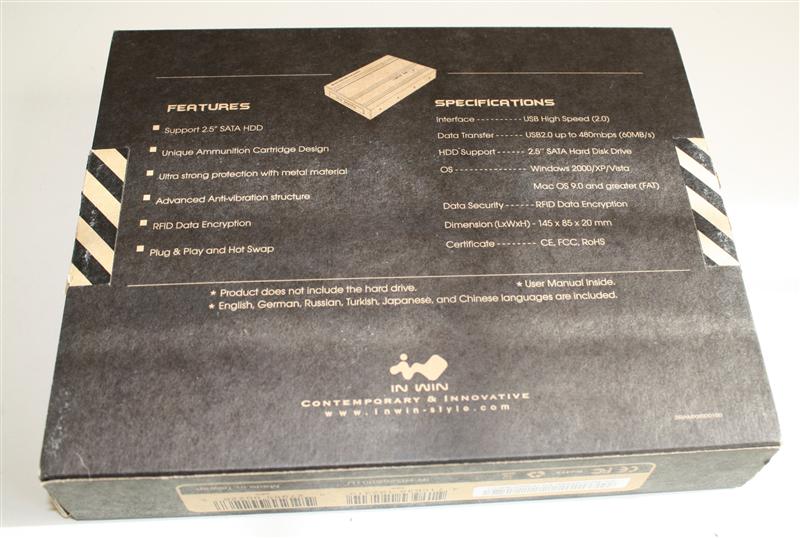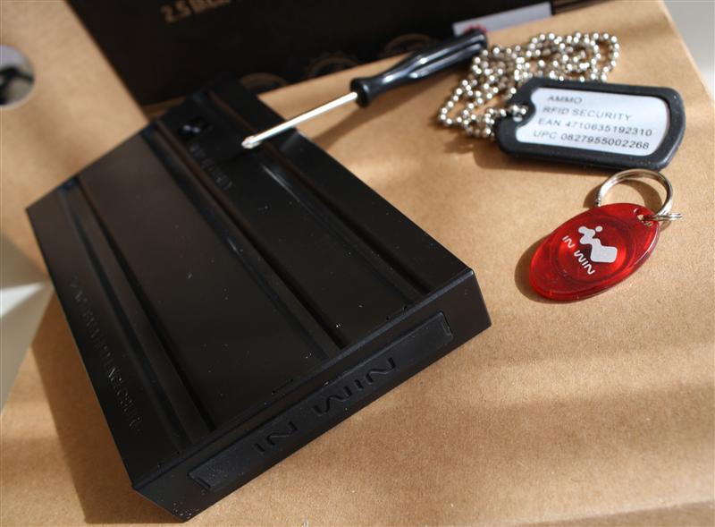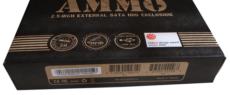 Per mantenere le informazioni cioè impedire la corruzione dei dati in maniera fisica alla IN-WIN hanno pensato ad un box di incomparabile fattura: una lamina spessa 0.8 mm di acciaio temperato all'esterno che racchiude un guscio di gomma all'interno che avvolge completamente l'hdd da 2,5" installato al suo interno. Questo garantisce una cellula di sicurezza pressochè impenetrabile e la protezione dell'hdd per cadute fino a 2 METRI. La catena di produzione che IN-WIN ha creato per l'AMMO segue MIL-STD-810F Method 516.5, standard statunitense che GARANTISCE una perfetta efficienza e resistenza agli urti delle APPARECCHIATURE MILITARI (lo stesso standard seguito da Dell per i suoi Latitude XFR che sono pressochè indistruttibili). Inoltre per sottolineare la robustezza del loro prodotto gli hanno dato la forma di un caricatore da fucile d'assalto M-16 che naturalmente attirerà i Gamers più accaniti come il miele per le api..