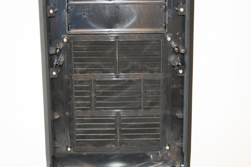 La parte frontale del case, come quella superiore, è ricoperta da un materiale plastico morbido al tatto. Ci colpisce subito la grande griglia di ventilazione che nasconde una ventola da 200mm, la quale immetterà aria fresca all'interno del cabinet. Tale ventola è equipaggiata con un filtro antipolvere removibile e lavabile. Sarà possibile sostituirla con due ventole da 120mm qual'ora ne sentissimo il bisogno.