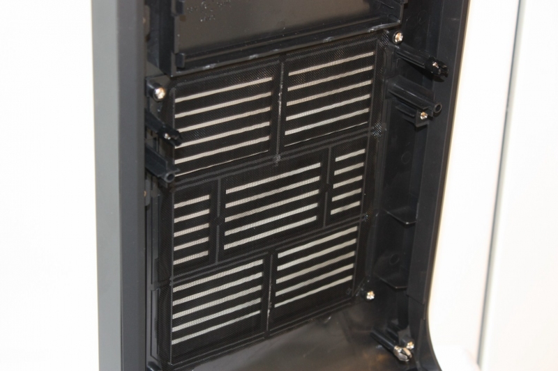 Una griglia di aereazione, suddivisa in due sezioni, nasconde una ventola di espulsione da 200mm sempre con led rosso, che svolgerà un ottimo lavoro nello smaltimento del calore interno.