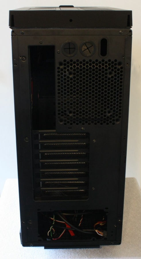 Il pannello laterale sinistro non presenta ventole e griglie di ventilazione aggiuntive, la fase di smontaggio purtroppo non sarà un'operazione semplice e veloce, dovremo infatti smontare posteriormente al case due blocchi posizionati uno in alto ed uno in basso, fissati da 2 viti ciascuno, svitare le viti che bloccano il pannello laterale, ed estrarlo dalla sede.