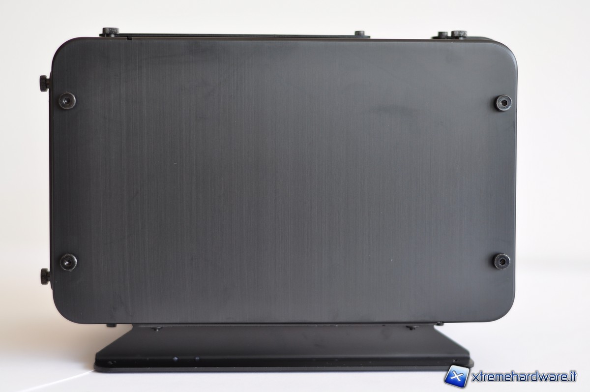 Il modulo degli hard disk misura 222 x 160 x 225 mm (L x A x P). Anche questo modulo è completamente in alluminio. I pannelli laterali, superiore e posteriore possono essere rimossi per mezzo delle thumbscrew mentre quello frontale è fissato con le viti esagonali.