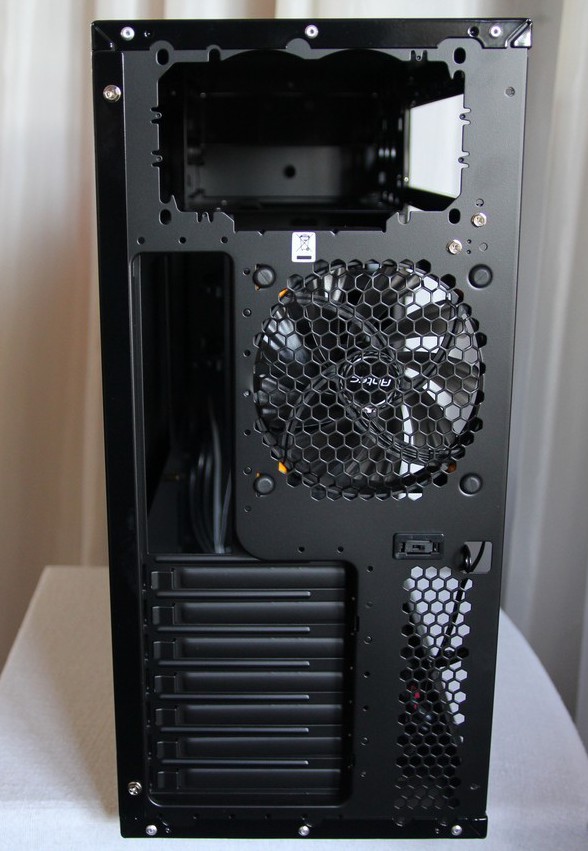 Una ventola Antec True Quiet 120, con portata d'aria di 35.8CFM massimi e 19.9 dB(A) a pieno regime, servirà per espellere l'aria calda dall'interno del case. Quest'ultima è ancorata al cabinet grazie a degli inserti in silicone e delle viti in gomma, che impediranno la generazione di vibrazioni.