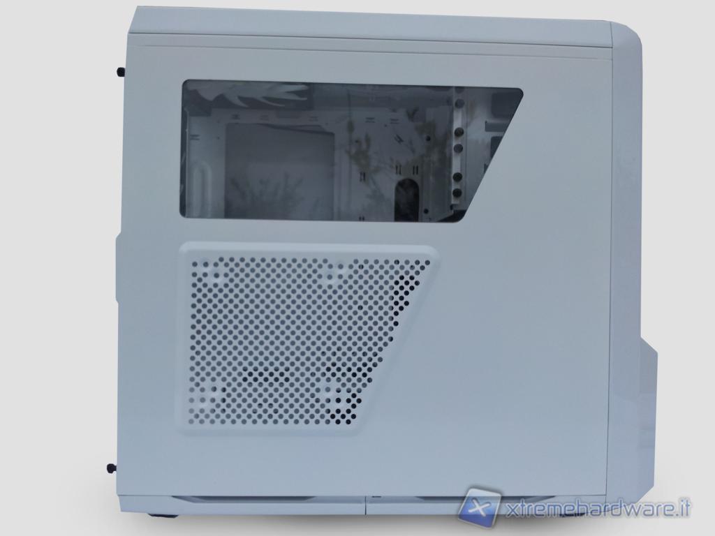 La parte superiore della paratia sinistra presenta una finestra in plexy dalla forma trapezoidale che permette la visione della zona socket, delle RAM e di una piccola parte del cestello per il montaggio delle periferiche da 5,25", solitamente lasciata coperta dalla maggior parte delle paratie finestrate.