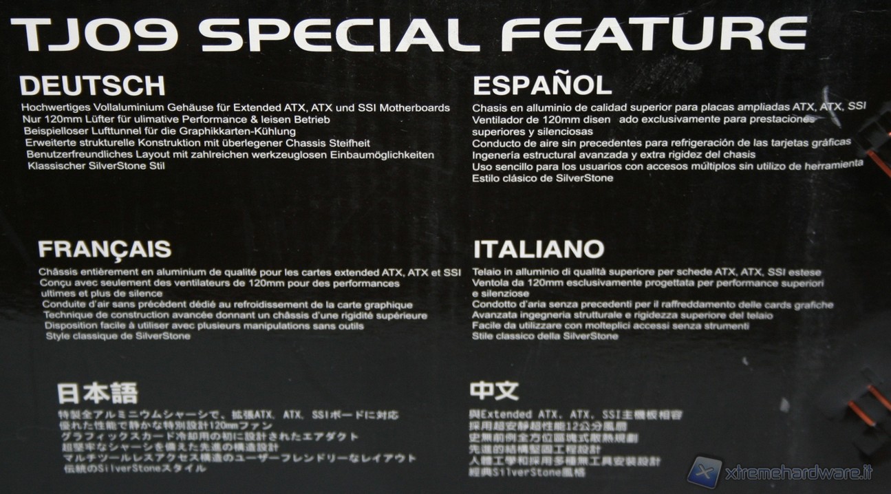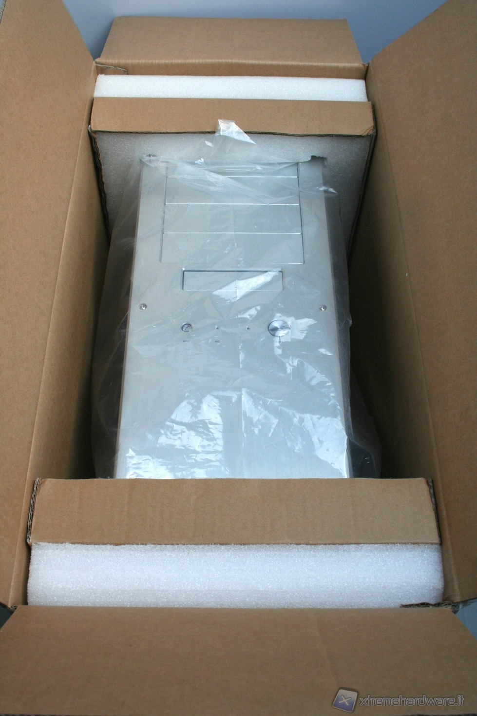 Il cabinet è stato imballato nel calssico ed ottimo box SilverStone. Ottime le foto, molte le informazioni dettagliate e adeguata la descrizione dell’unità. All’interno il cabinet è al riparo da potenziali urti grazie a due gigantesche protezioni in polistirolo espanso, cartone protettivo ed una grande busta di plastica contro graffi accidentali.