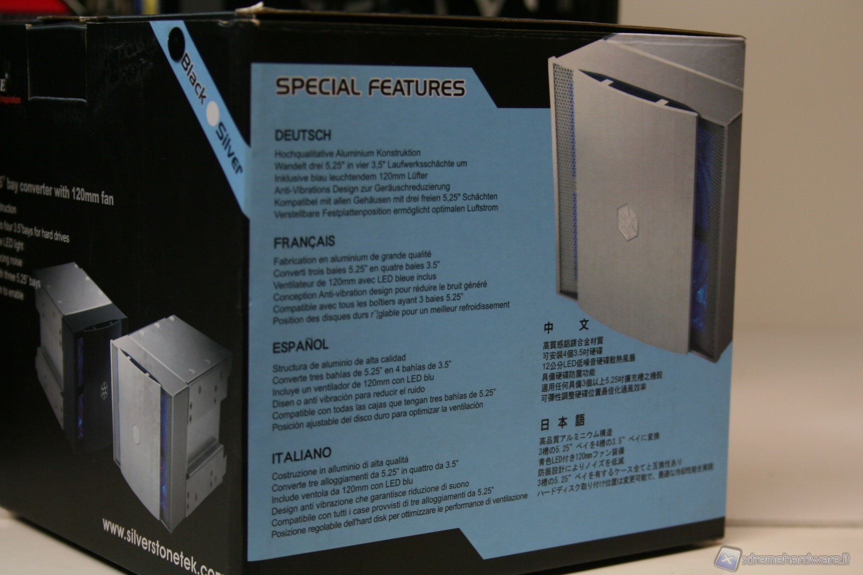 In questo capitolo facciamo una piccola preview di due interessanti accessori della Silverstone. Il primo è un HD cage, il modello CFP51 V2.0, mentre il secondo è l’utilissimo adattatore per dischi da 3.5” hot-swap da 6Gbps 2.5” SATA HDD/SSD, il modello SST-SDP09. Il CFP51 V2.0 viene fornito in due versioni, black e silver. Tra le caratteristiche principali troviamo :