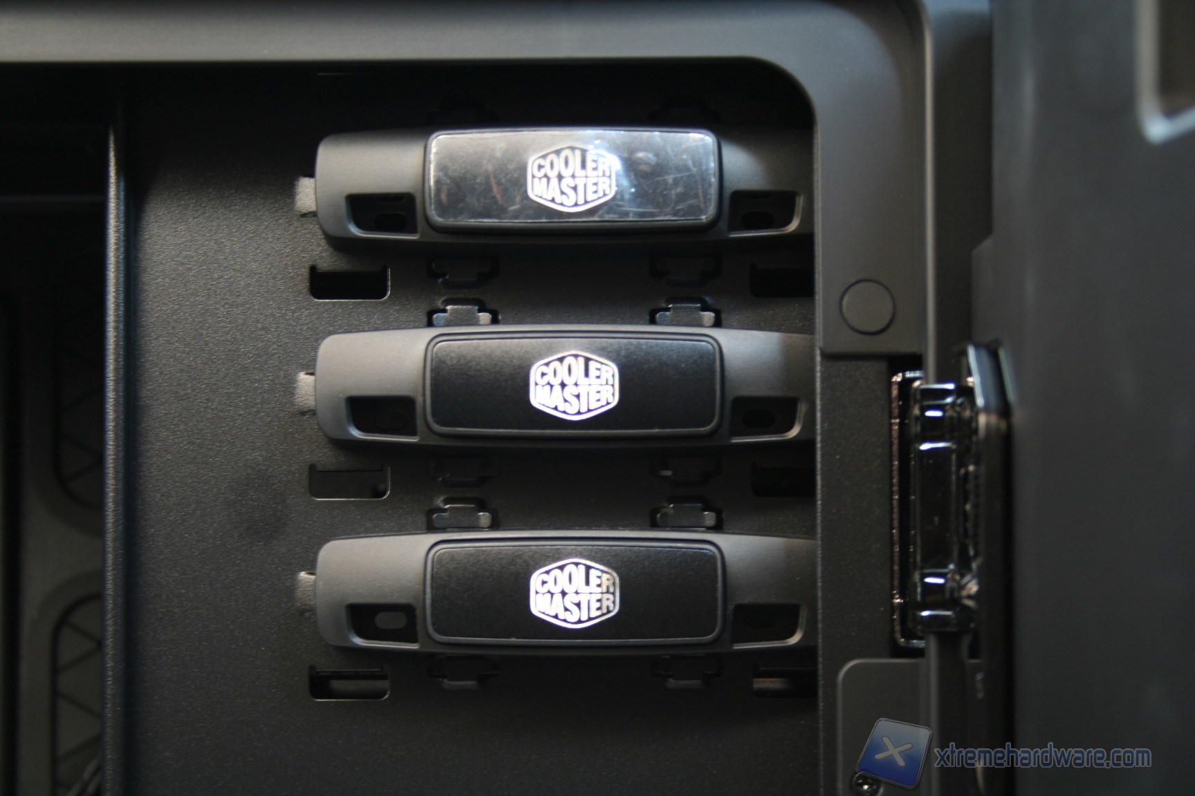 Come sistema di blocco delle tre periferiche da 5.25”, troviamo un sistema davvero ottimo, che sfrutta la pressione orizzontale di un grande pulsante, che permette un serraggio immediato e facilissimo delle periferiche in posizione.