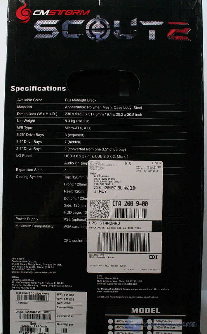 La confezione è classica, in stile CM Storm, con un buon numero di informazioni ed un ottimo imballo interno, caratterizzato da due distanziatori di polistirolo, più la classica bustina di plastica antigraffio.