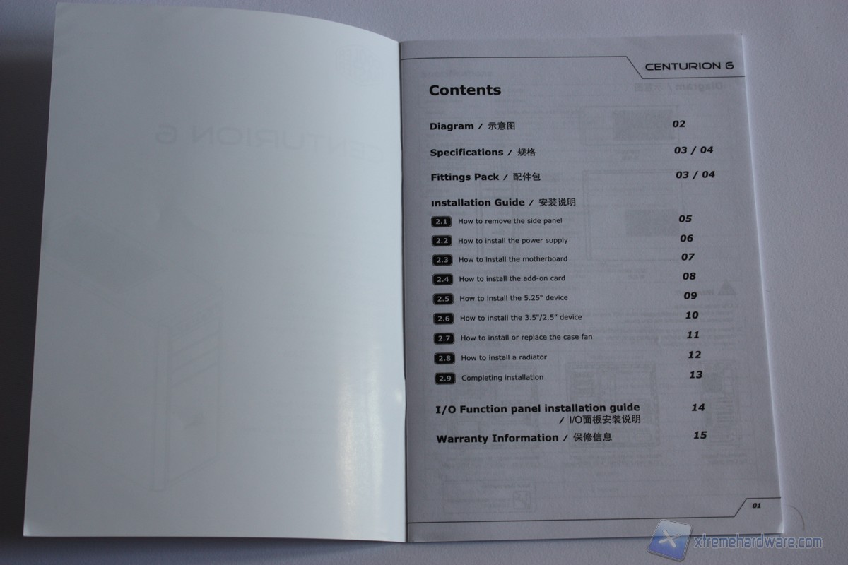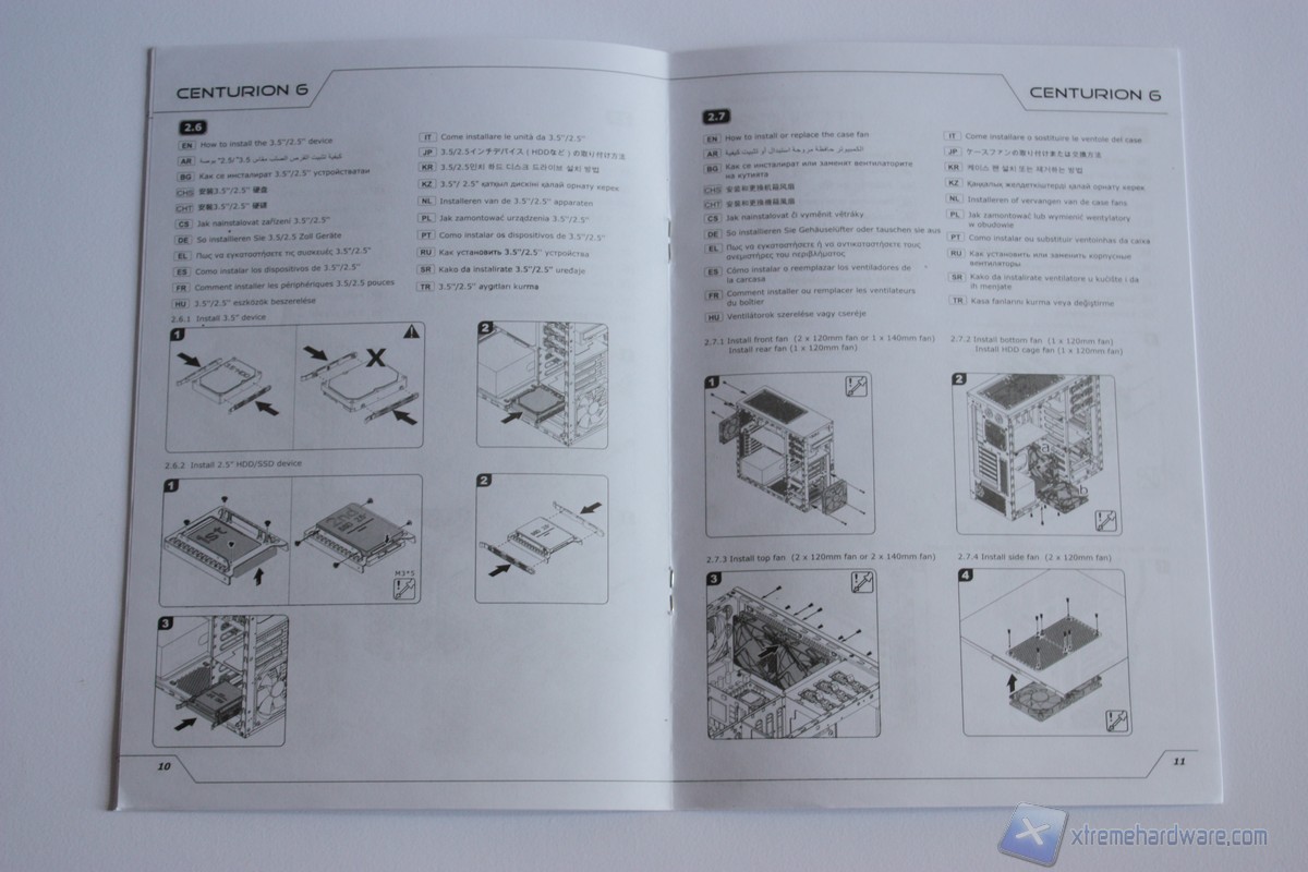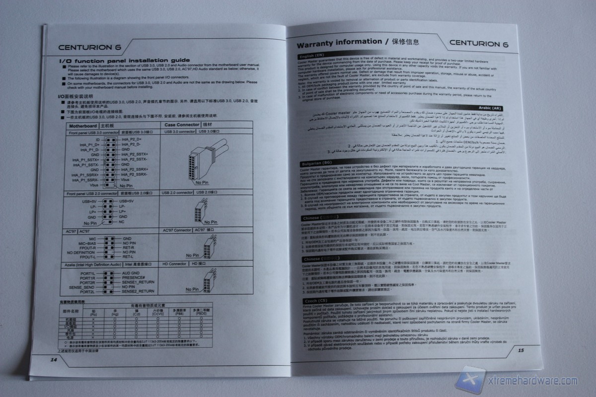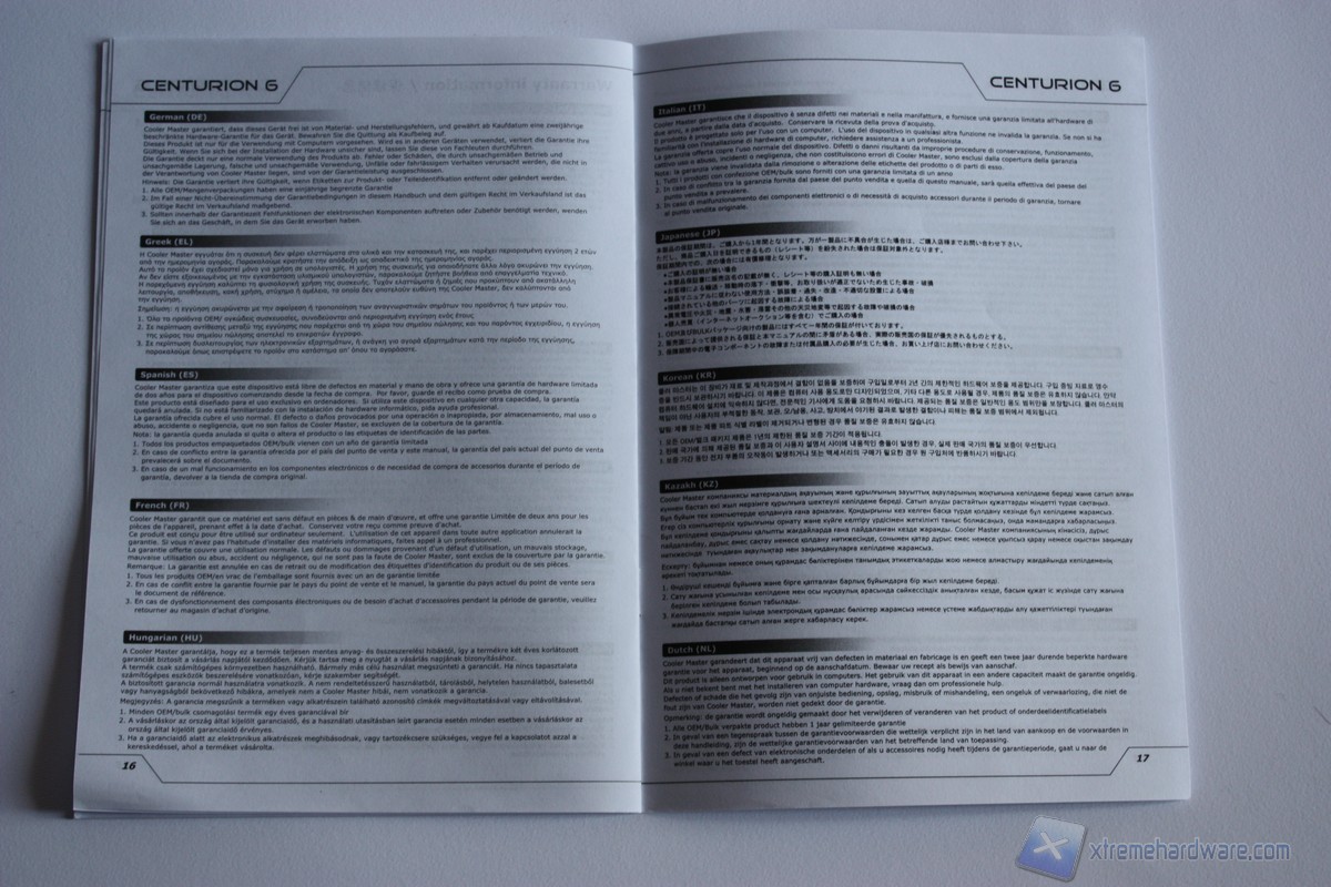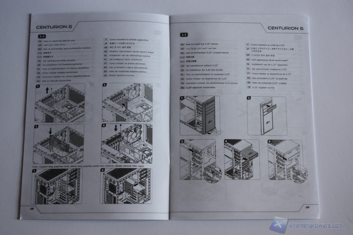 Andiamo ora ad anlizzare il manuale fornito con il Cooler Master Centurion 6: